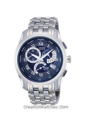 BL8001-51L is a Men’s Eco-Drive Perpetual Calendar Watch from Citizen, This watch is made in Japan. It has blue dial with Stainless Steel Case, Screw case back, Sapphire Glass, three fold Clasp lock with Push button release Stainless Steel Band. The water resistant of this watch is 100 Meters.