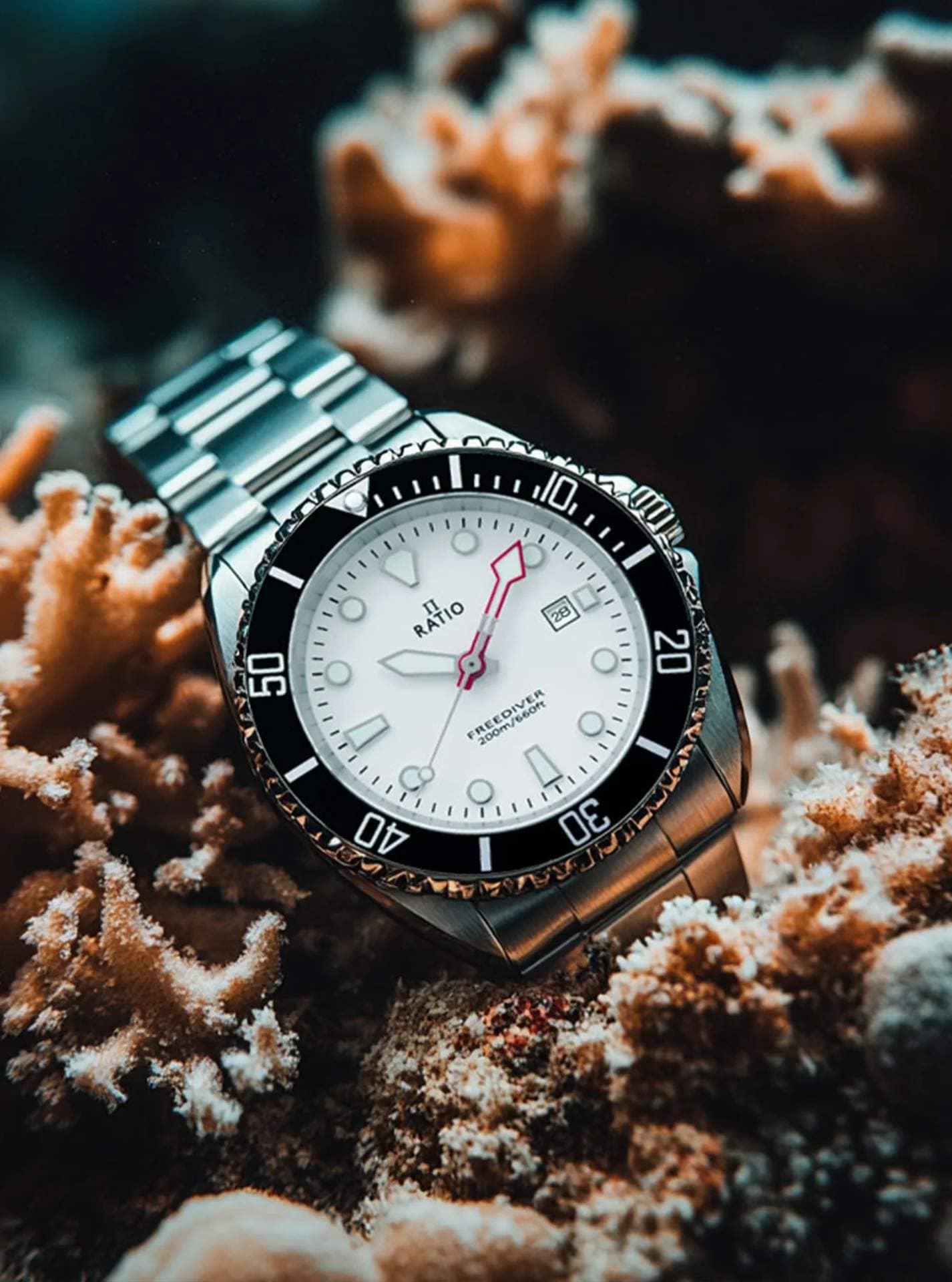 The Ratio Freediver Women’s Watch didn’t appear out of thin air. The Freediver line echoes the passionate spirit of explorers who push themselves to plunge deeper, stay longer, and discover hidden corners of marine ecosystems few have witnessed.